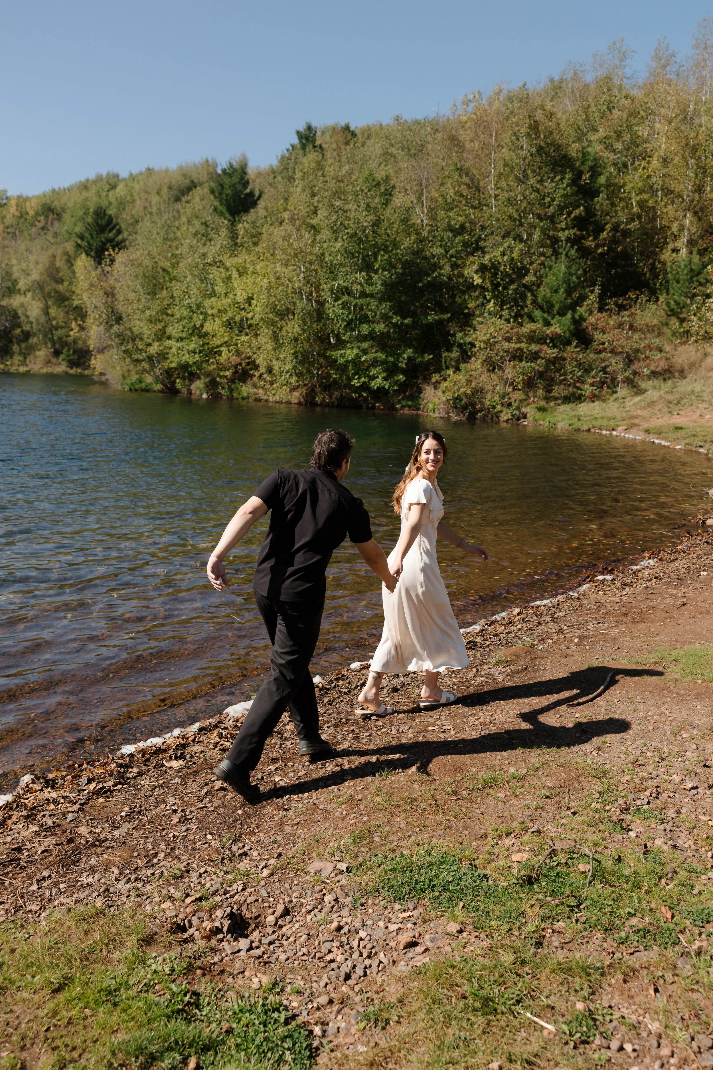 After sipping on some drinks, both for the photos and because why not, we packed up and made our way to the local Recreational Area for part 2 of this engagement session. It was now approaching noon and the sun climbed herself way up in the sky. We were all sweating within minutes and immediately encouraged TJ to take off the jacket he’d been wearing in the bar.
