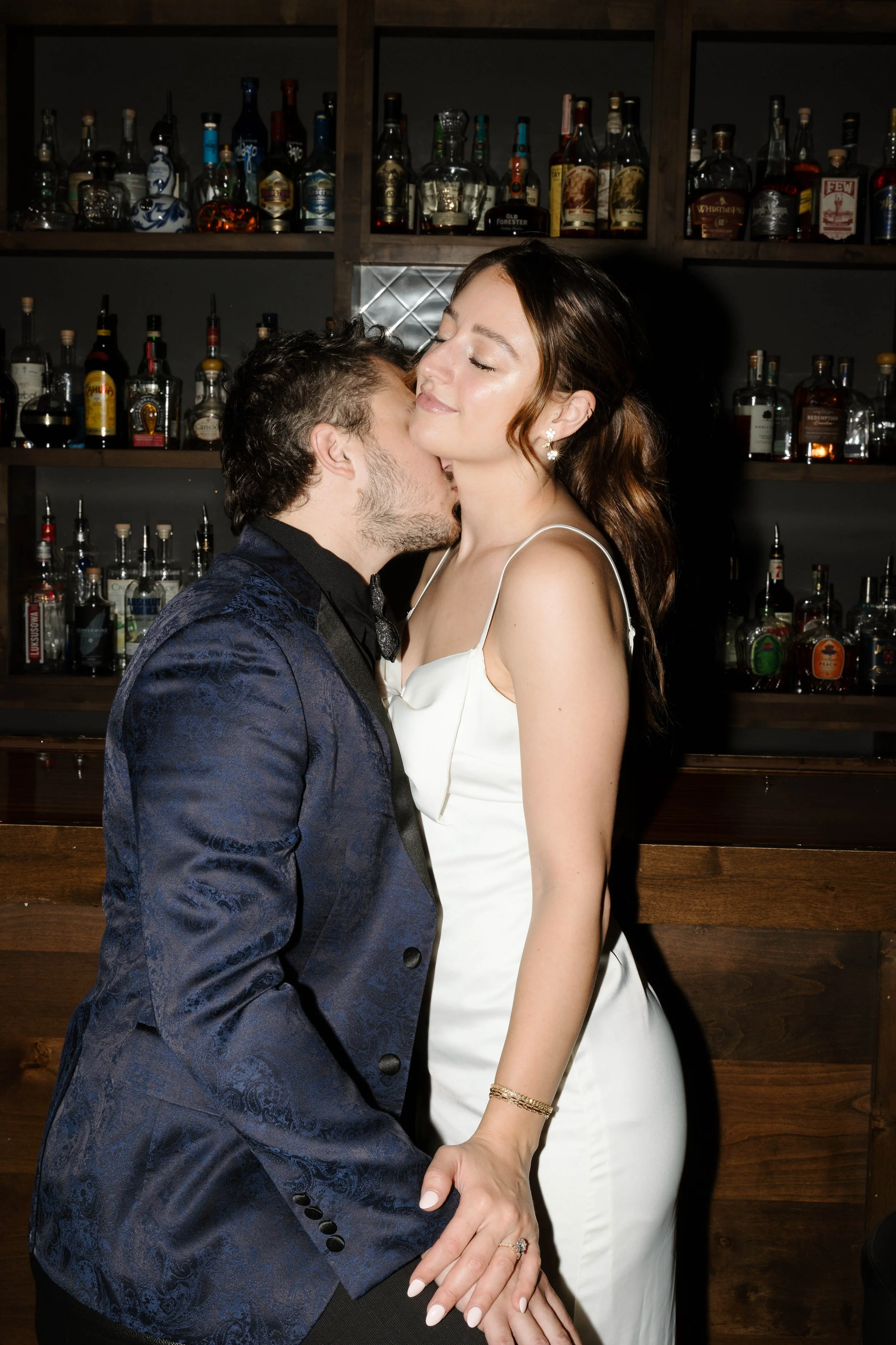 View the engagement session that starts in a bar setting then moves outside to the warm sunshine.